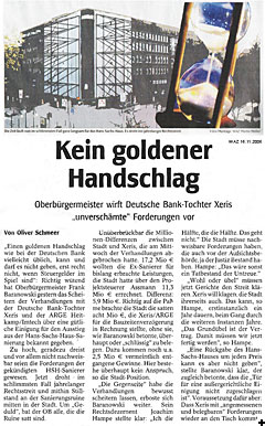 Oberbürgermeister wirft Deutsche Bank-Tochter Xeris "unverschämte" Forderungen vor